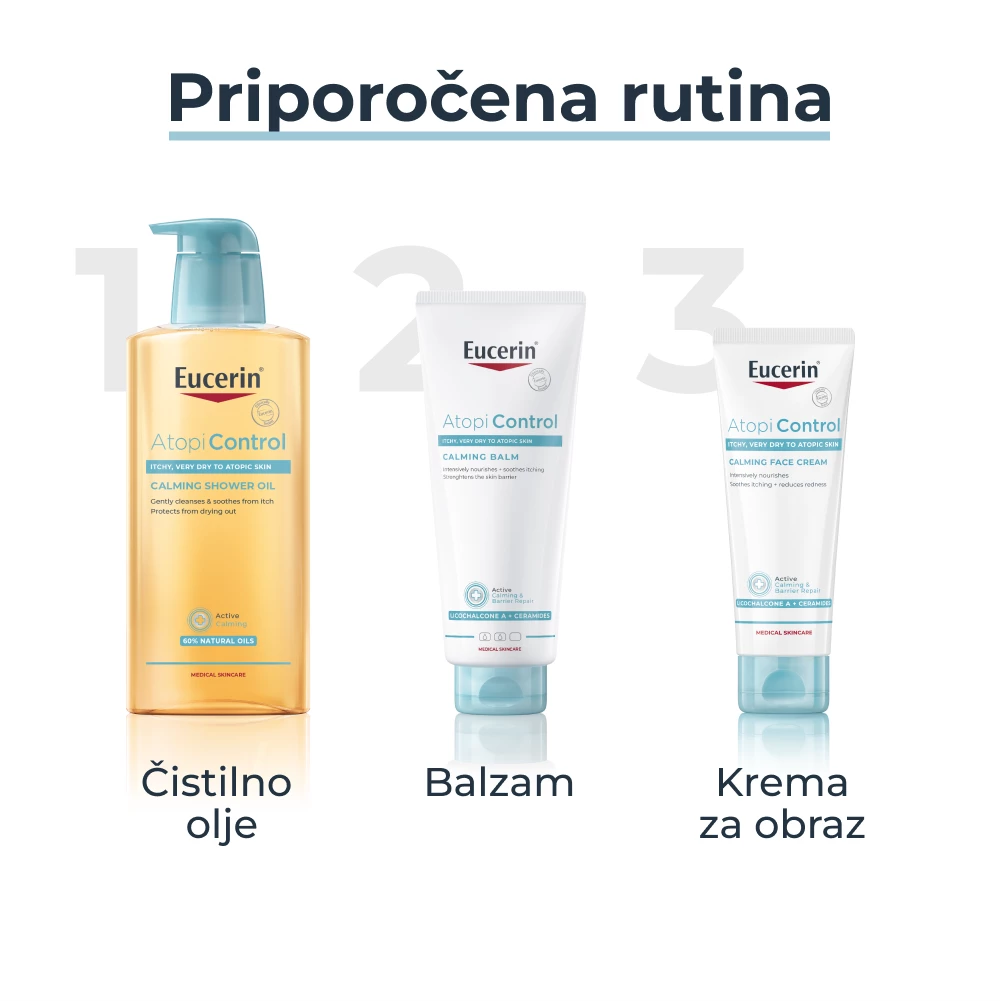 - Eucerin AtopiControl čistilno olje nanesite na mokro kožo.