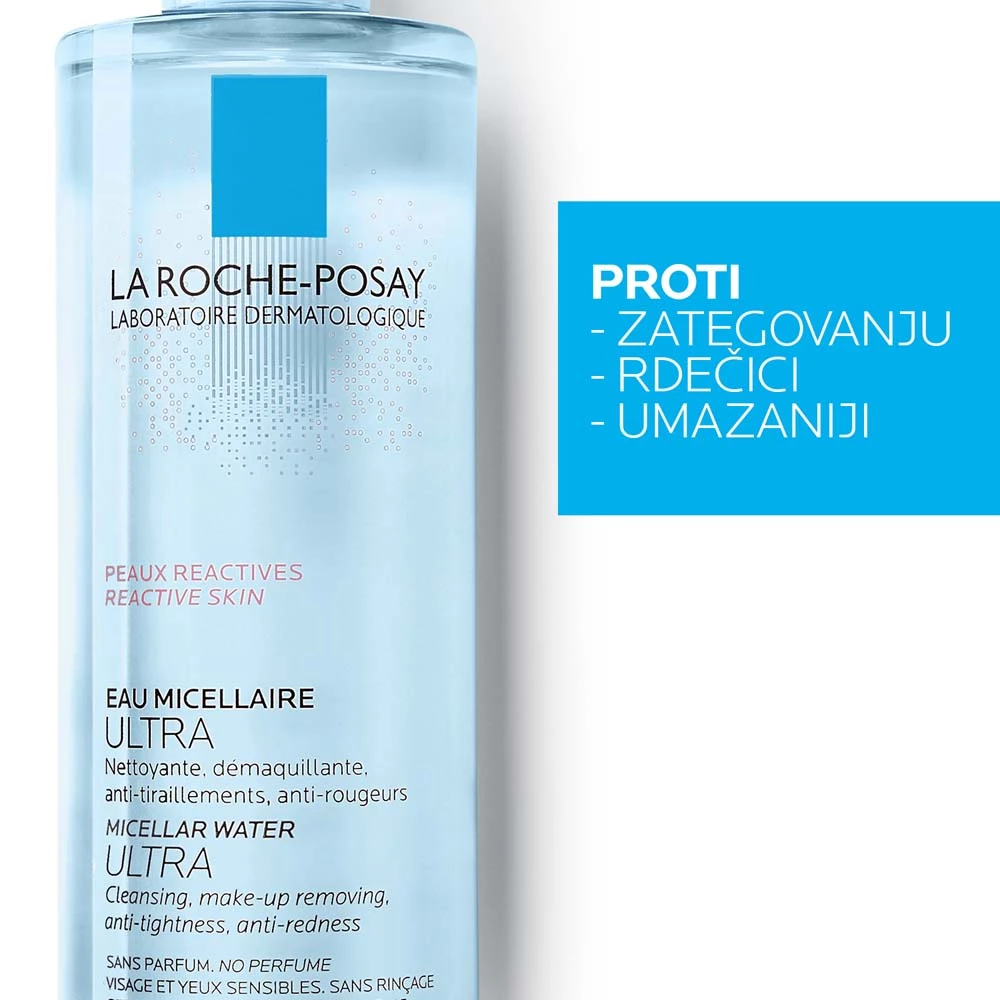 LRP Ultra micelarna voda za reaktivno kožo očisti kožo in odstrani ličila. Površinsko aktivne snovi nudijo visoko učinkovitost čiščenja in so izbrane za optimalno toleranco.