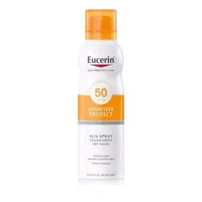 Eucerin Sun Dry Touch prozoren sprej za zaščito pred soncem ZF 50 je aerosol za zaščito telesa pred soncem, ki je primeren za občutljivo kožo, vključno s kožo, nagnjeno k aknam. Napredna spektralna tehnologija združuje širokopasovne in fotostabilne UVA-/UVB-filtre1 za visoko UV-zaščito z licochalconom A, da nevtralizira proste radikale, ki jih povzročata UV- in HEV-svetloba.