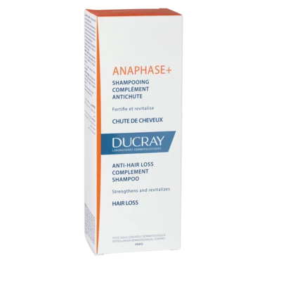 Ducray Anaphase+ kremni šampon vrača volumen, moč in vitalnost vaših las in se lahko uporablja tako pogosto, kot je potrebno. Tokoferil nikotinat stimulira mikrocirkulacijo lasišča in zagotavlja korenini lasu elemente, ki so potrebni za normalen metabolizem in krepitev (vitamini B5, B6 in B8). Kremna in bogata tekstura tega šampona omogoča masažo lasišča in tako pripravlja lasišče na lokalni tretma z losjonom proti izpadanju las.