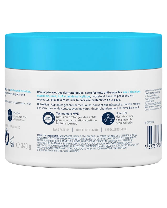 Aqua/Water/Eau, Glycerin, Paraffinum Liquidum/Mineral Oil/Huile Minerale, Glyceryl Stearate, Cetearyl Alcohol, Triethanolamine, Salicylic Acid, Niacinamide, Cetyl Alcohol, Ammonium Lactate, Behentrimonium Methosulfate, PEG-100 Stearate, Zea Mays Oil/Corn Oil, Ceramide NP, Ceramide AP, Ceramide EOP, Carbomer, Dimethicone, Methylparaben, Sodium Lauroyl Lactylate, Cholecalciferol, Cholesterol, Phenoxyethanol, Disodium EDTA, Tocopherol, Propylparaben, Hydrolyzed Hyaluronic Acid, Phytosphingosine, Xanthan Gum.
