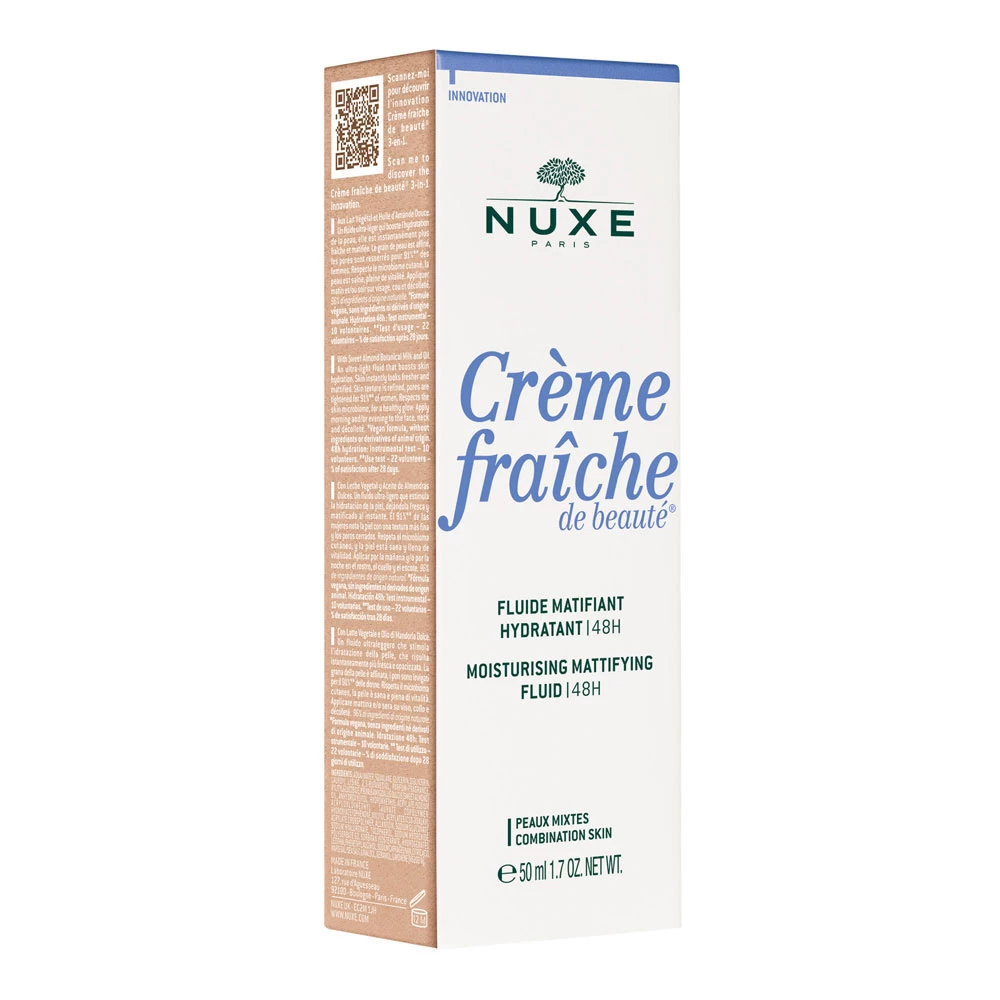 Nuxe Creme Fraiche de Beaute 48-urni vlažilni fluid z učinkom matiranja je obogaten z rastlinskim mlečkom in oljem sladkega mandlja, zagotavlja 48-urno vlaženje kože in ima takojšen učinek matiranja. Koža bo ves dan sveža, mehka in matirana.