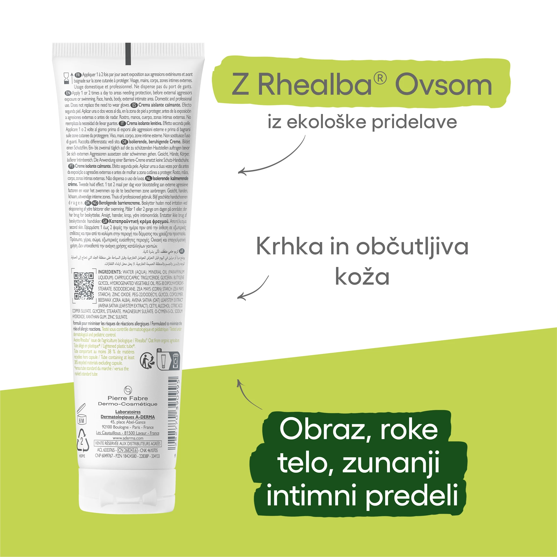 - IZOLIRA in ŠČITI razdraženo kožo pred zunanjimi dejavniki zahvaljujoč kompleksu naravnih aktivnih sestavin: "učinek druge kože", sestavljen iz čebeljega voska, trigliceridov in glicerola.