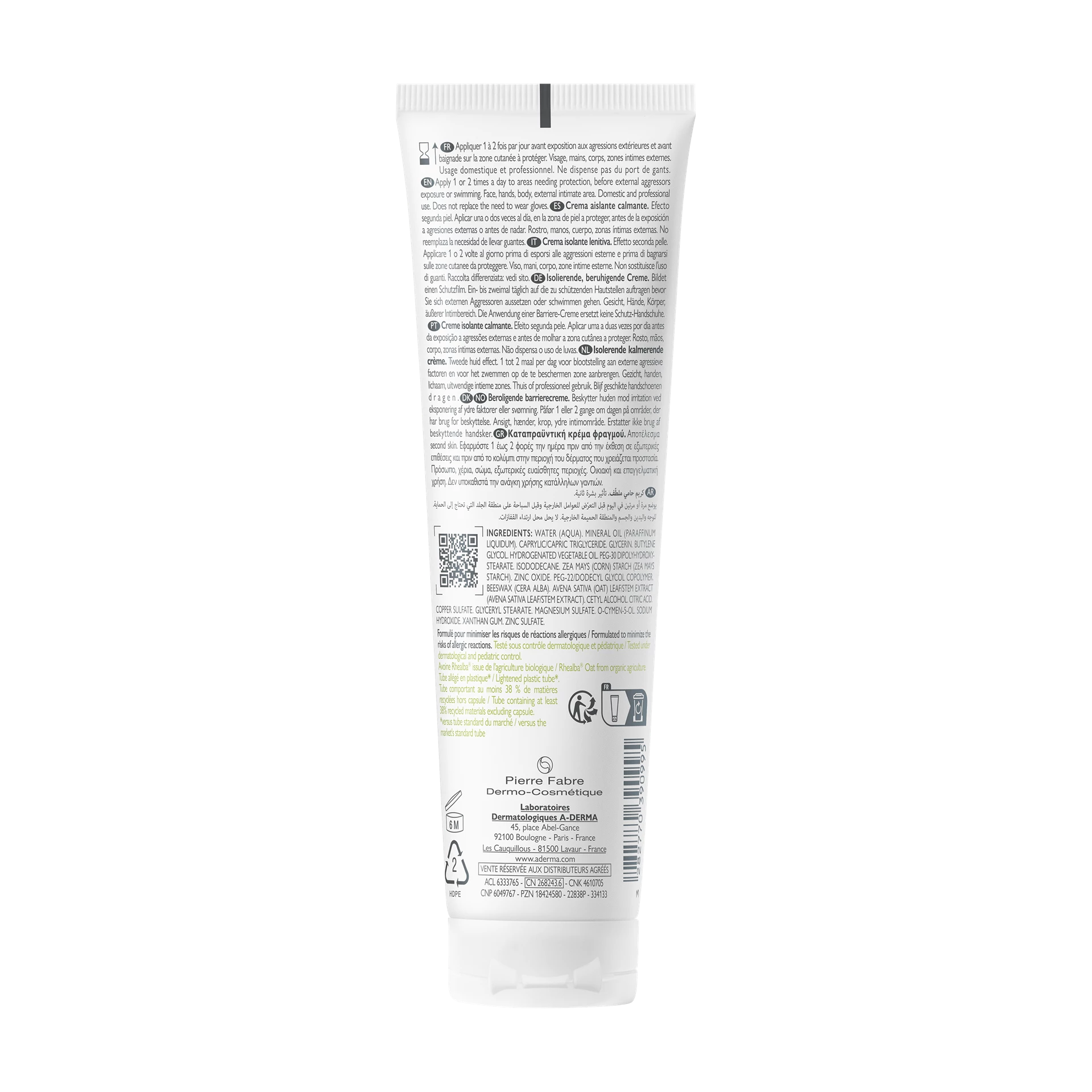 A-Derma Dermalibour+ BARRIER izolacijska krema izolira in ščiti razdraženo kožo celotne družine pred zunanjimi agresivnimi dejavniki (veter, mraz, čistila, dražeče kovine, bazenska voda, morska voda, pogosto umivanje in razkuževanje rok) zahvaljujoč učinku "druge kože" in formuli brez silikona z visoko toleranco. Poleg zaščite kože pred razdraženostjo zaradi zunanjih vplivov, zlasti mraza, lahko izdelek uporabite tudi za zaščito pred razdraženostjo kože zaradi inkontinence. Izdelek je primeren za odrasle, otroke, dojenčke, novorojenčke in starostnike.