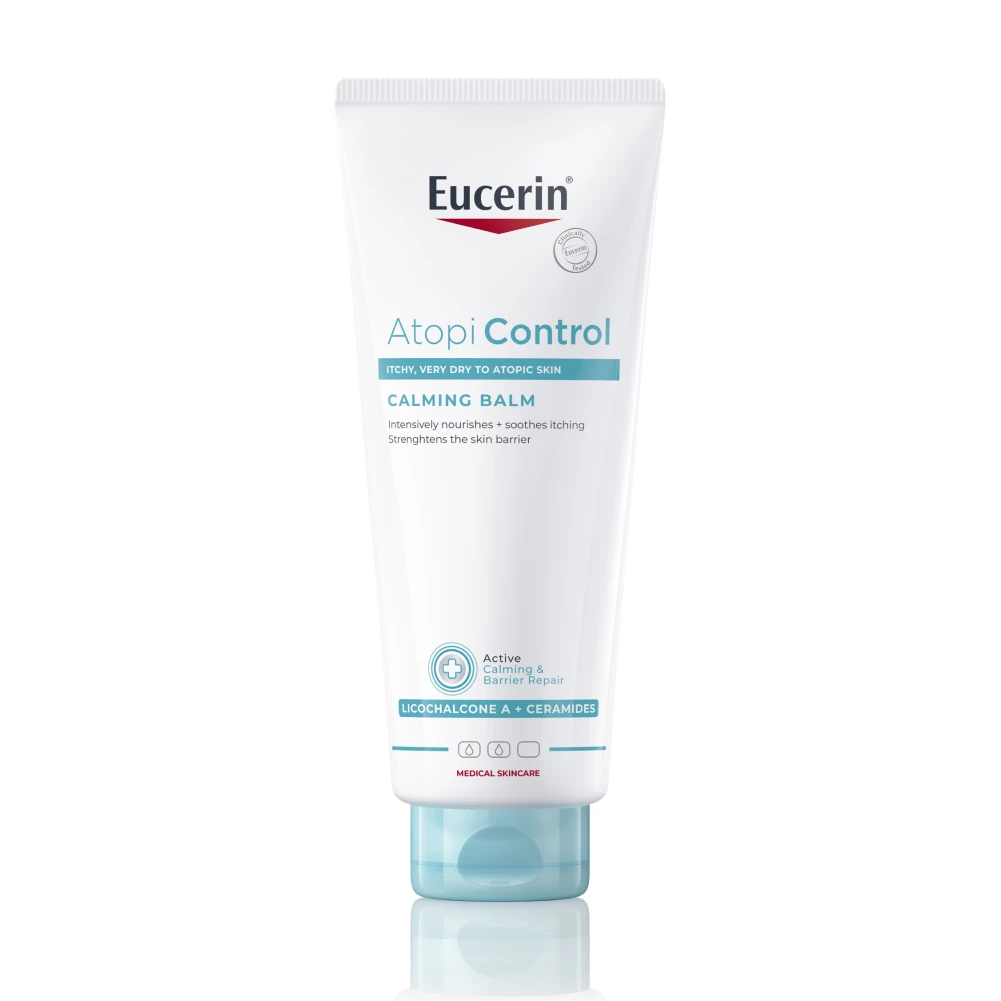 Eucerin AtopiControl balzam za telo je namenjen vsakodnevni uporabi in je bil posebej razvit, da pomiri in intenzivno navlaži razdraženo in srbečo kožo. Lahek in negovalen balzam, ki je po sestavi olje v vodi, je obogaten s pomirjajočim licochalconom A, ceramidi in karitejevim maslom, da okrepi bariero kože, zmanjša suhost in ublaži srbenje. Balzam za nego pri atopijskem ekcemu zagotavlja takojšnjo navlažitev, da kožo naredi mehko in gladko, z redno uporabo pa opazno izboljša stanje kože.