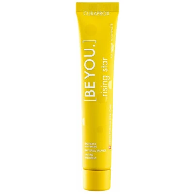 Zobna pasta CURAPROX [BE YOU.] Rising star, z okusom grenivke in bergamotke vsebuje naravne sestavine in zelišča, ki podpirajo naravno zaščito zob in dlesni ter pripomorejo k popolnejši ustni higieni: varuje pred zobno gnilobo, zagotavlja trajno svež dah, pomaga pri preobčutljivih zobeh, ne povzroča aft, spodbuja naravno delovanje sline, zavira nastajanje plaka in poskrbi tudi za dlesni.