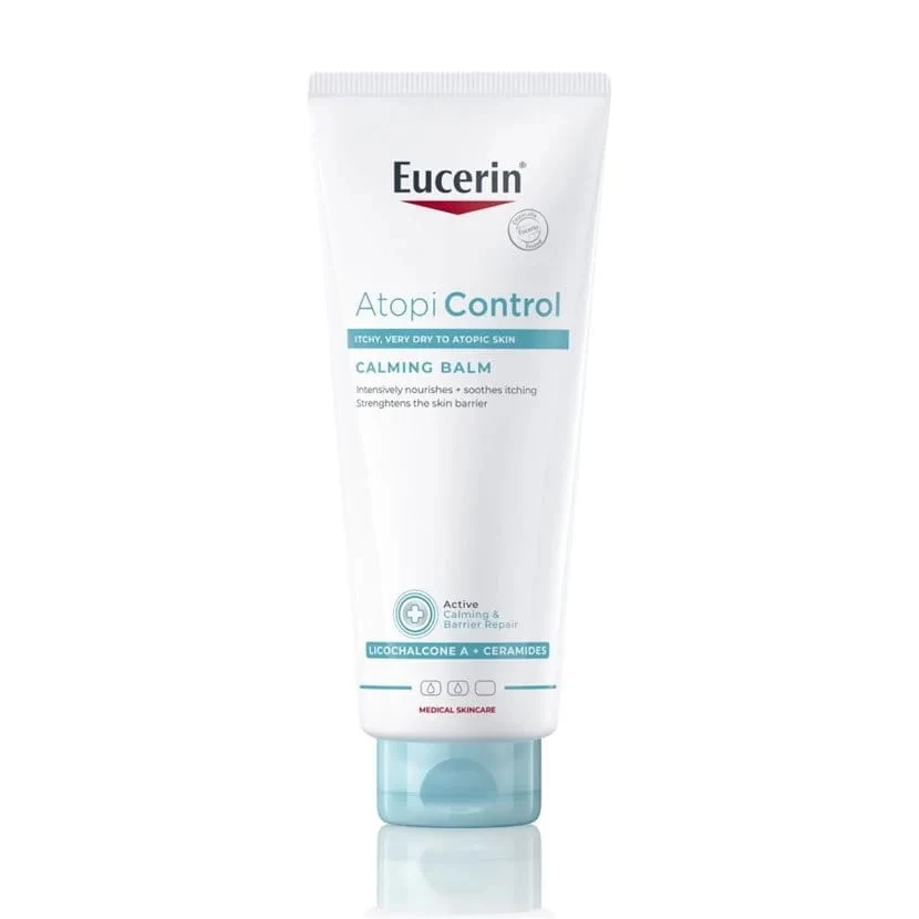 Eucerin AtopiControl balzam je balzam za telo za vsakodnevno uporabo, ki je bil posebej razvit, da pomiri in intenzivno navlaži razdraženo in srbečo kožo. Lahek in negovalen balzam, ki je po sestavi olje v vodi, je obogaten s pomirjajočim licochalconom A, ceramidi in karitejevim maslom, da okrepi bariero kože, zmanjša suhost in ublaži srbečico.