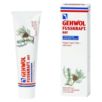 GEHWOL FUSSKRAFT rdeči balzam za suho, izsušeno kožo stopal je negovalni balzam, ki ogreje. Poživljajoča kafra, izvlečka paprike in ingverja, kakor tudi eterična olja rožmarina in gorskega rušja poskrbijo za bolj prijeten občutek toplote.