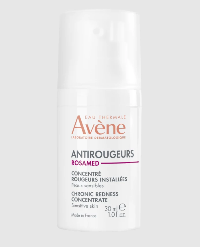 Avène Antirougeurs ROSAMED koncentrat za nego kronične rdečiceje primeren za občutljivo kožo nagnjeno k rdečici.  Za kožo nagnjeno h kuperozi. Lahko se uporablja po laserskih tretmajih. Lahko se uporablja samostojno ali v kombinaciji z zdravili.