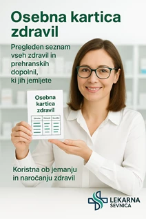 Osebna kartica zdravil je pregleden seznam vseh zdravil in prehranskih dopolnil, ki jih jemljete. Pomaga vam slediti načrtu zdravljenja, z navodili za odmerjanje, načinom uporabe in morebitnimi opozorili.