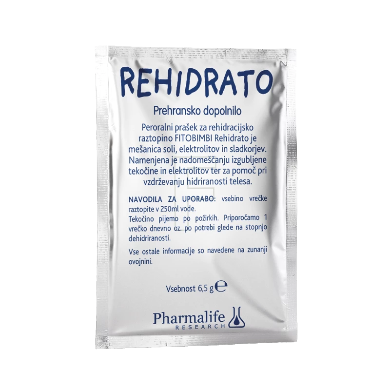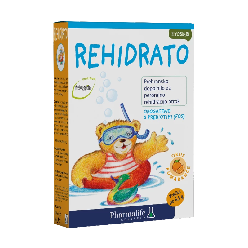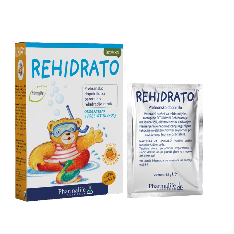 Fitobimbi Rehidrato prašek - okus pomaranče peroralni prašek za rehidracijsko raztopino je mešanica soli, elektrolitov in sladkorjev. Formulacija je obogatena s prebiotiki (FOS). Namenjena je nadomeščanju izgubljene tekočine in elektrolitov in za pomoč pri vzdrževanju hidriranosti telesa. Raztopina prispeva k ohranjanju vzdržljivosti pri daljših telesnih naporih in nadomešča izgubljene tekočine.