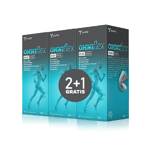 Omniflex Flexvital tekoče prehransko dopolnilo vsebuje kombinacijo sestavin: kolagena, glukozamina, hondroitina in hialuronske kisline, ki so naravno prisotni v telesu. Prav tako vsebuje vitamin C in mangan, ki imata vlogo pri nastajanju vezivnega tkiva in ohranjanju zdravih kosti ter pri nastajanju kolagena za normalno delovanje hrustanca in kosti.