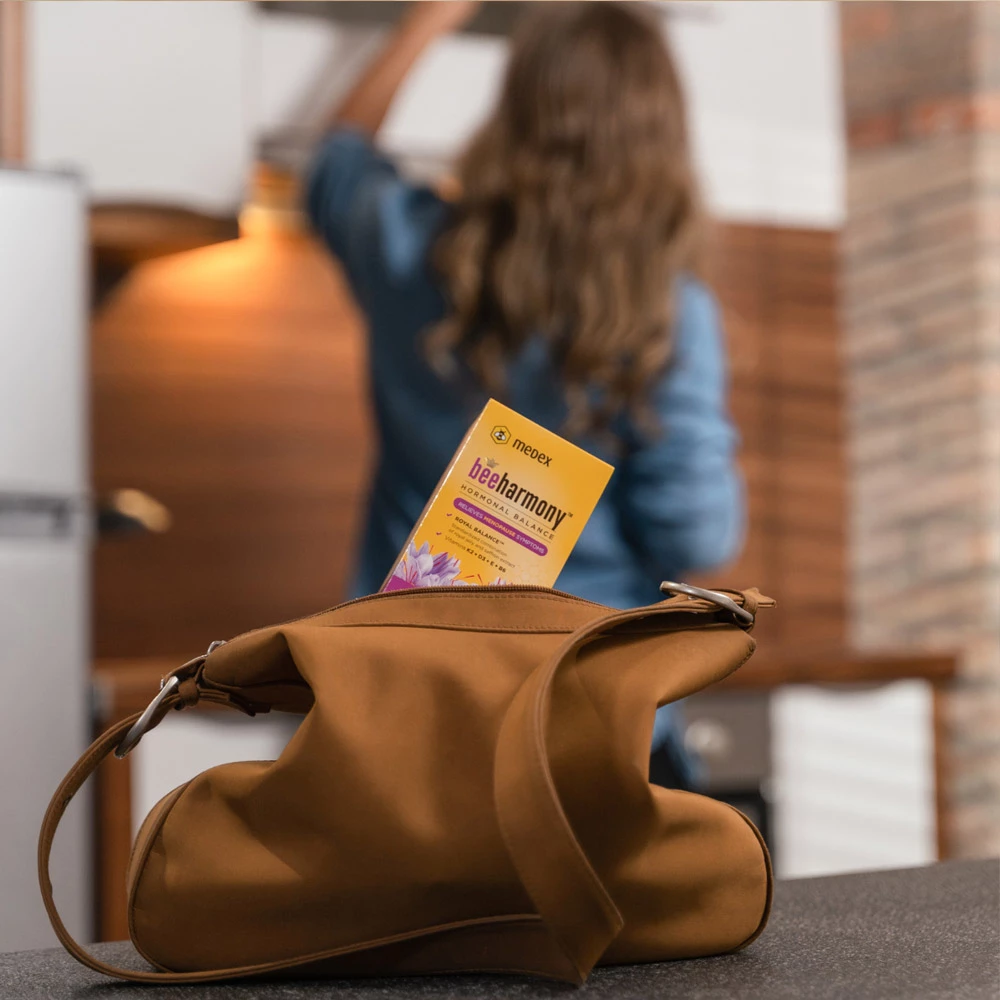 Beeharmony Medex je naravna pomoč za lajšanje simptomov menopavze. Edinstvena formula Royal Balance™ s standardizirano kombinacijo matičnega mlečka in žafrana ter koktajlom vitaminov (K2 + D3 + E + B6), ki jih žensko telo v zrelih letih najbolj potrebuje, pripomore k uravnavanju delovanja hormonov in lajša simptome menopavze. Prav tako prispeva k zmanjševanju utrujenosti in izčrpanosti, k čustvenemu ravnovesju in normalnemu psihološkemu delovanju. Pomaga tudi bolje spati ter prispeva k ohranjanju zdravih kosti in zaščiti celic pred oksidativnim stresom. Matični mleček je ena največjih dragocenosti v naravi in edina hrana čebelje matice, najplodnejšega bitja na svetu. Ključna sestavina matičnega mlečka je nenasičena maščobna kislina 10-HDA (10-hidroksi decenojska kislina). Matični mleček lahko aktivira gene, ki so potrebni za razvoj matice.