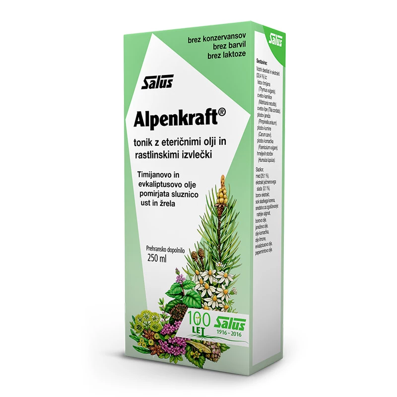 Sladkor, med (29,1%), ekstrakt ječmenovega slada (3,1%), borov ekstrakt, sok sladkega korena, sredstvo za zgoščevanje: natrijev alginat, borovo olje, janeževo olje, olje komarčka, olje limone, evkaliptusovo olje, pepermintovo olje.