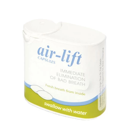 Air-Lift kapsule vsebujejo svetovno patentirano formulo, ki odstrani smrdljive hlapne žveplove komponente (VSC) iz želodca na naraven način. Air-lift kapsule proti zadahu so izjemno učinkovite pri zadahu iz želodca, ki ga povzročajo hrana, tobak, alkohol, diete in ostalo.