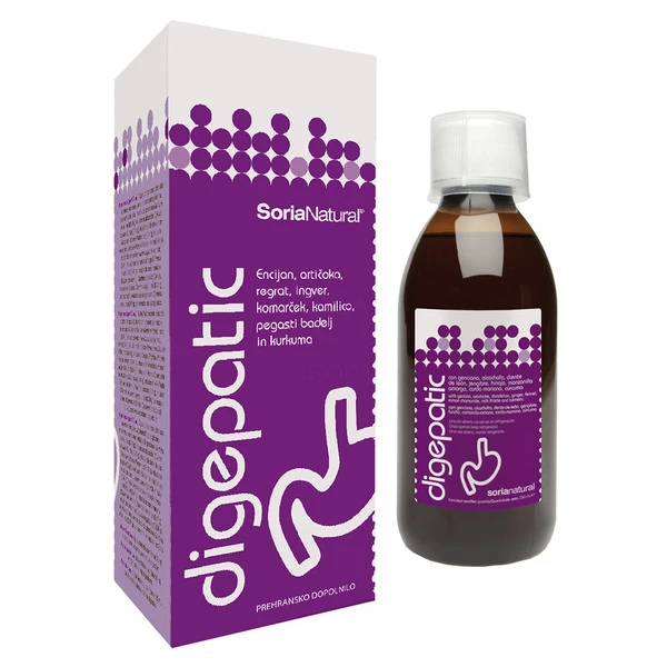 Soria Natural Digepatic je prehransko dopolnilo z encijanom, artičoko, regrat, ingver, komarček, kamilico, pegasti badelj in kurkumo.