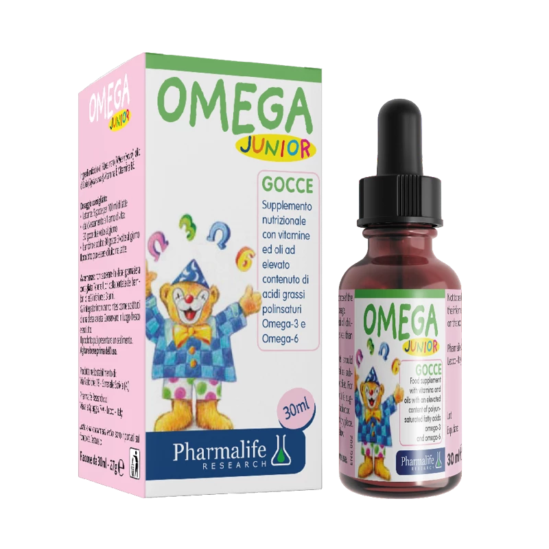Omega junior kapljice vsebujejo olje, pridobljeno iz semen črnega ribeza, bogatega z večkrat nenasičenimi maščobnimi kislinami: linolno (omega 6) in alfa linolensko (omega 3) kislino.