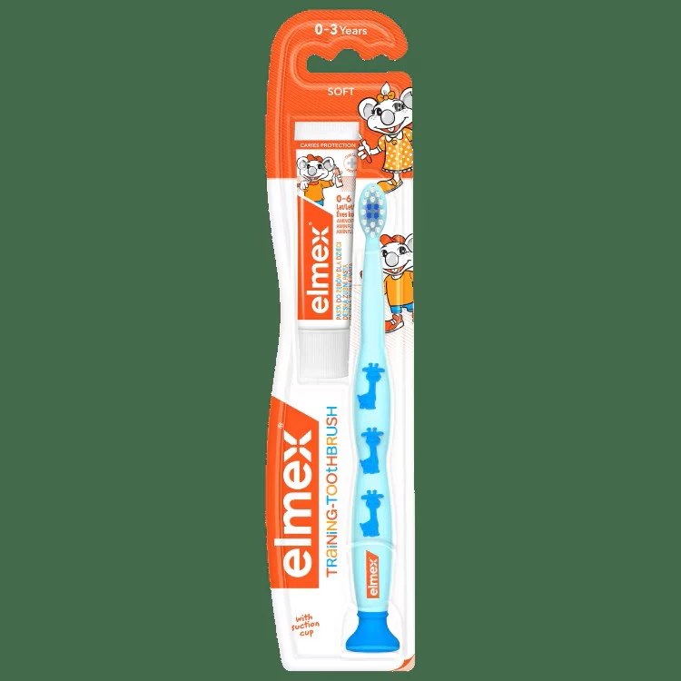 Elmex otroška ščetka za prve zobe je namenjena vsakodnevnemu čiščenju mlečnih zob. Majhna glava ščetke je še posebej primerna za zelo majhne otroke.