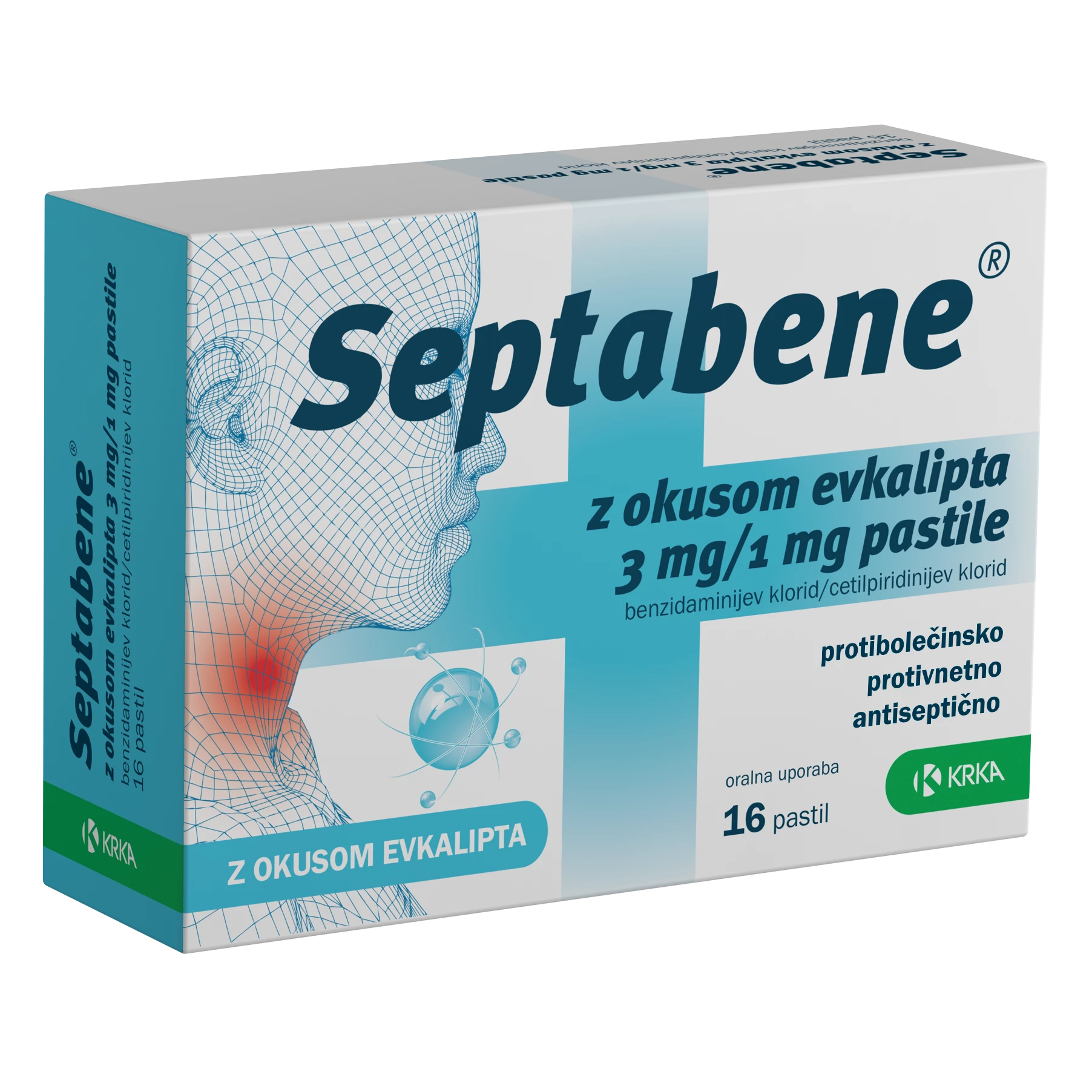 Zdravilo Septabene z okusom evkalipta pastile je protivnetno, protibolečinsko in antiseptično zdravilo za lokalno peroralno uporabo. Zdravilo Septabene z okusom evkalipta razkužuje ustno votlino in žrelo ter zmanjšuje znake vnetja žrela, kot so bolečina, rdečina, oteklina, vroč občutek in oslabljeno delovanje.